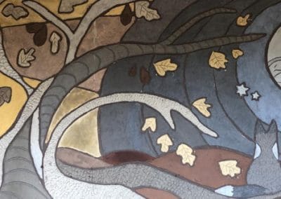 Pangea Fundación ubicados en Chiloé – Chile, vino a enseñarnos como trabajar en un mural con tierras de colores de nuestra zona, participamos miembros de la comunidad Corcolén y voluntarios interesados en la técnica de revoque fino sobre revoque de tierra en muro de adobillo.